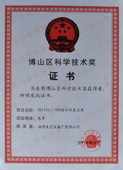 公司產(chǎn)品獲博山區(qū)科學技術獎