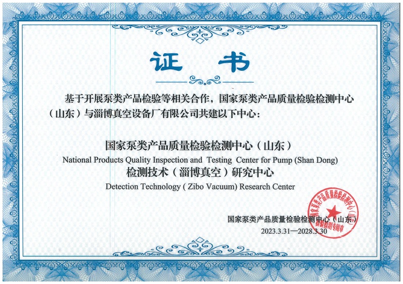 公司被國(guó)家泵業(yè)產(chǎn)品質(zhì)量檢驗(yàn)檢測(cè)中心授權(quán)為:國(guó)家泵類產(chǎn)品業(yè)質(zhì)量檢驗(yàn)檢測(cè)中心(山東)和檢測(cè)技術(shù)(淄博真空)研究中心